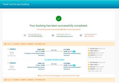 A confirmation page will appear to confirm that your booking was successful. You will also receive a confirmation e-mail once your payment is verified, which contains all of your flight details and important travel information.